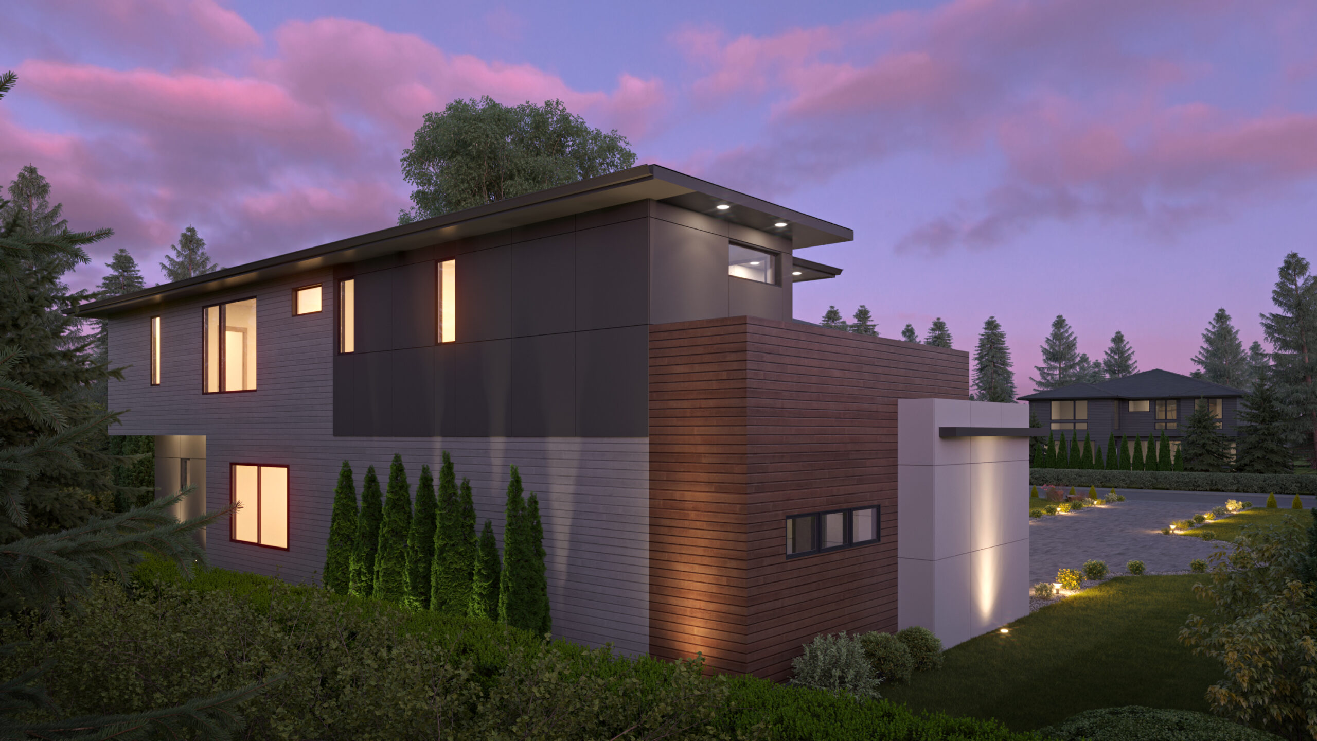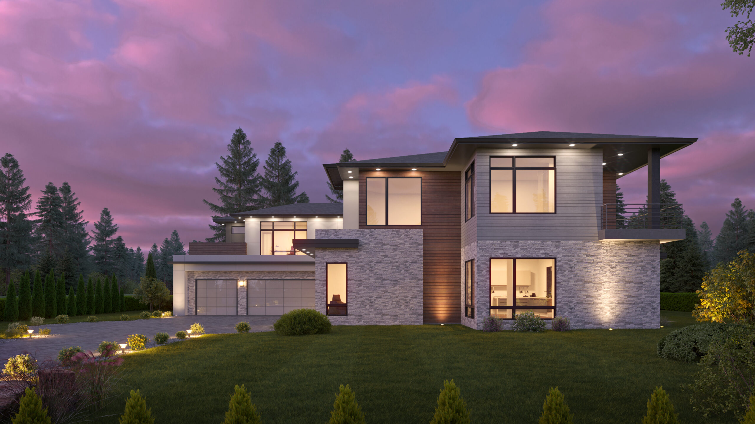 - This spacious Contemporary Northwest house plan features 5 bedrooms, multiple living areas, a home office, and a large back patio.