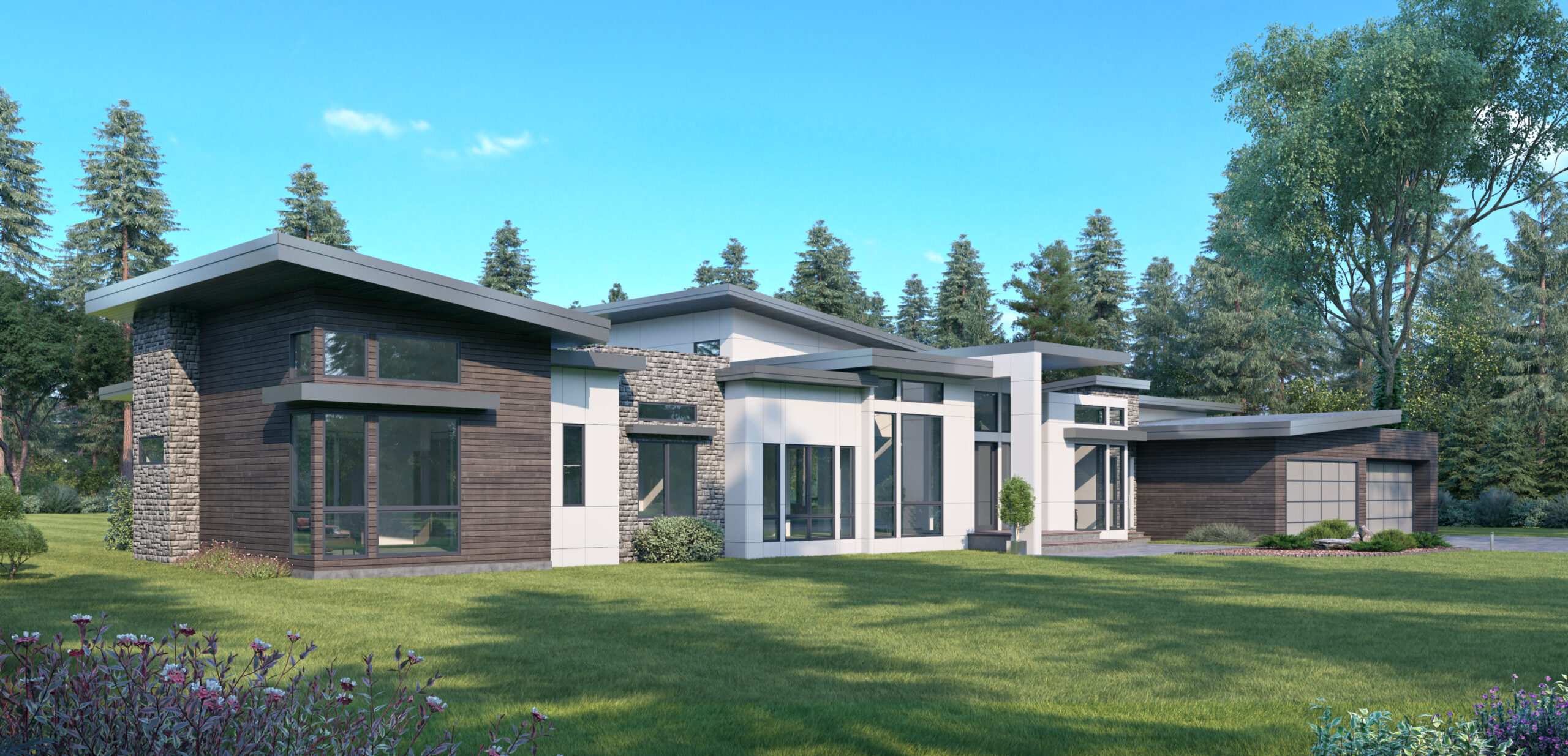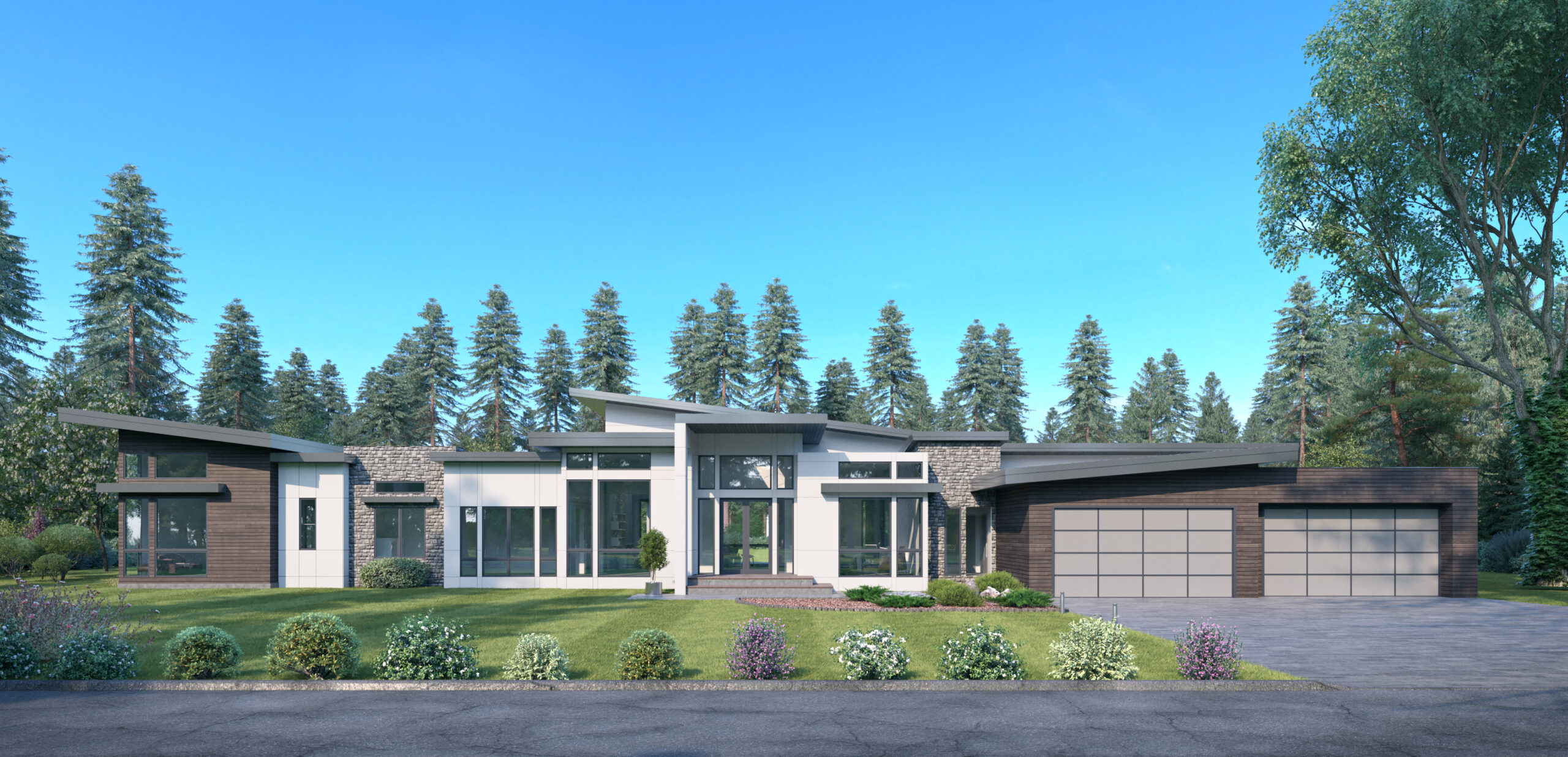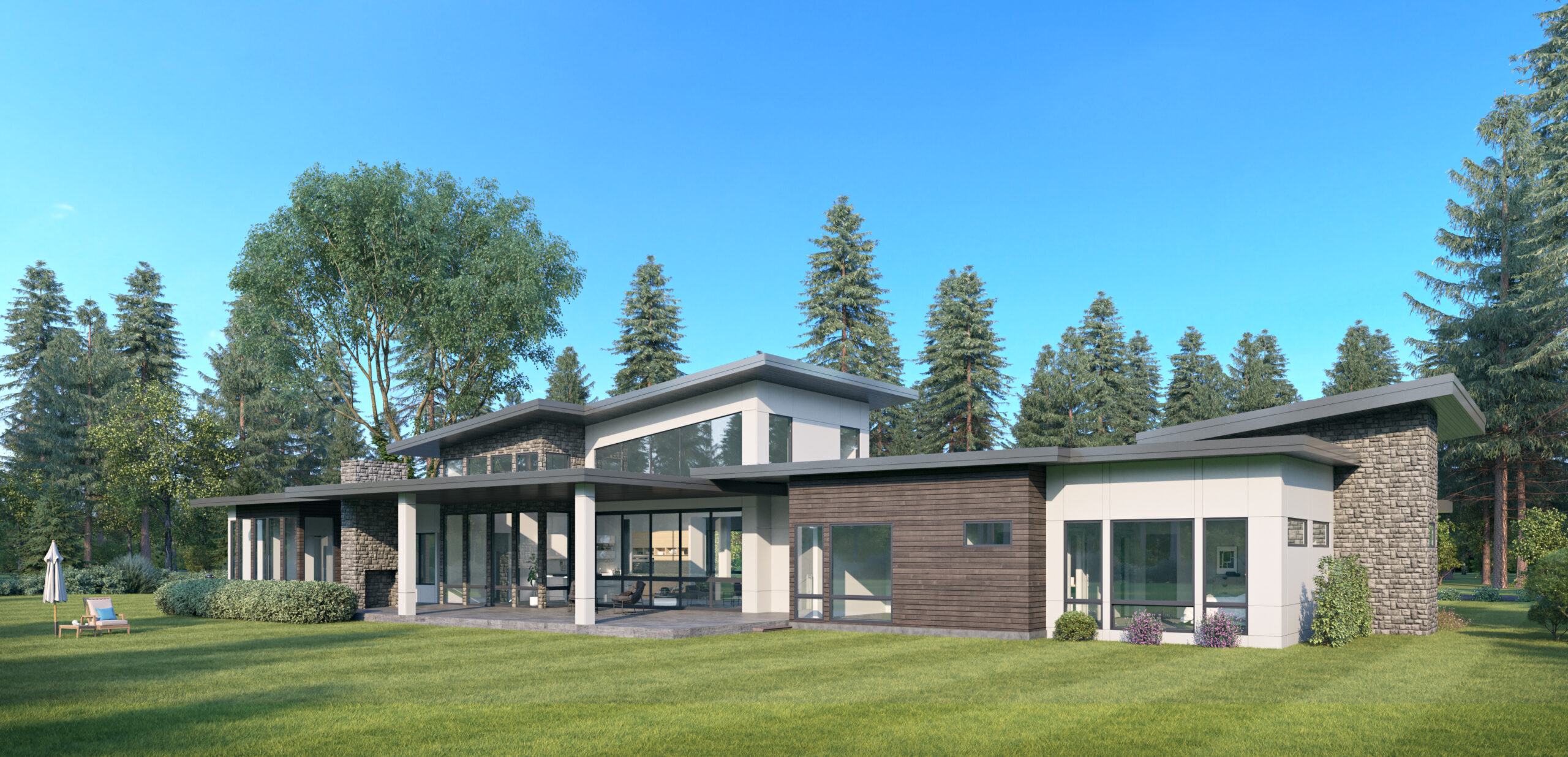 - Tall vaulted ceilings and large windows allow natural light to consume the interior of this one-level Contemporary house plan, while an accordion-style door retracts to allow the great room to flow onto the generous covered patio.