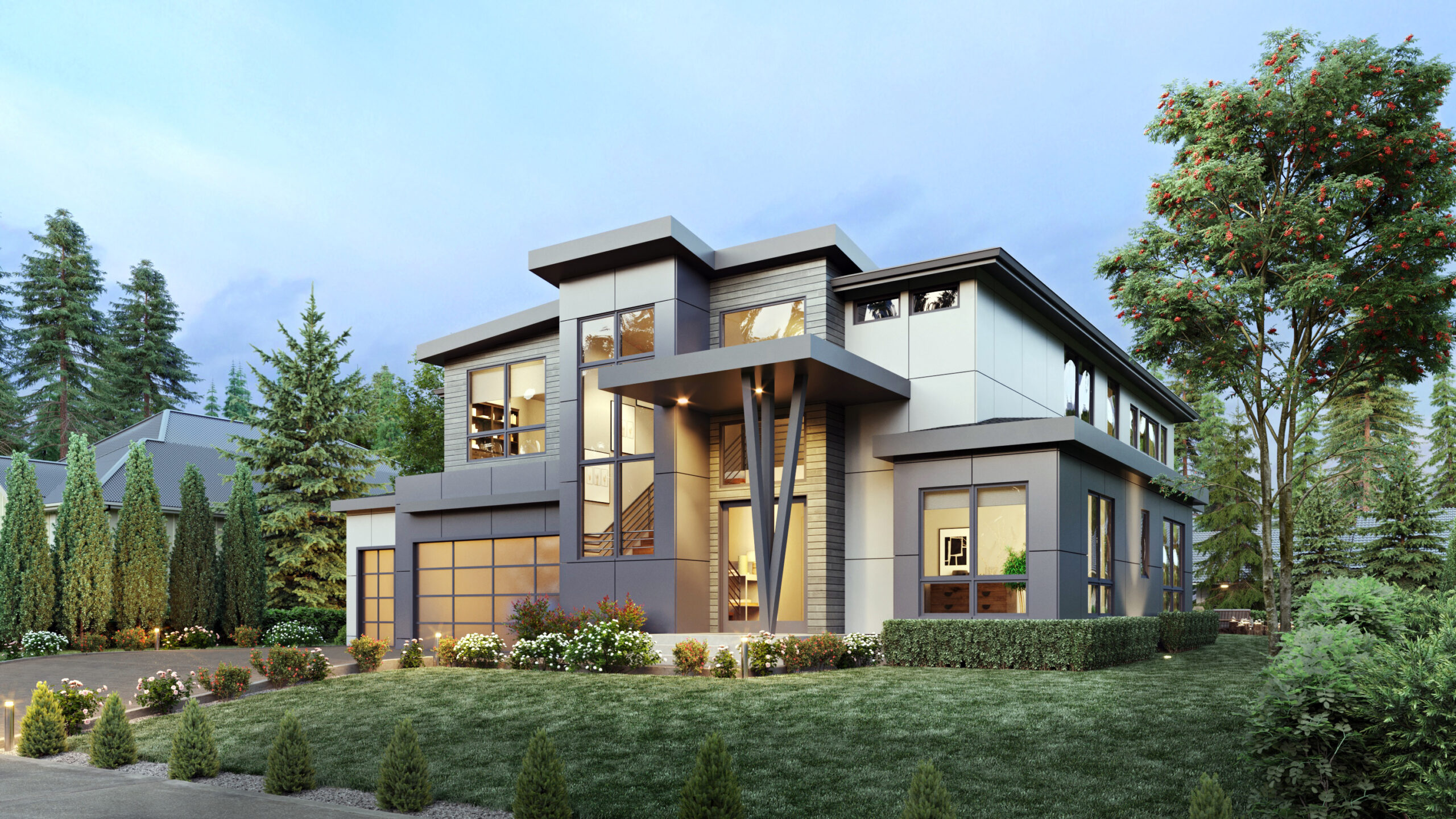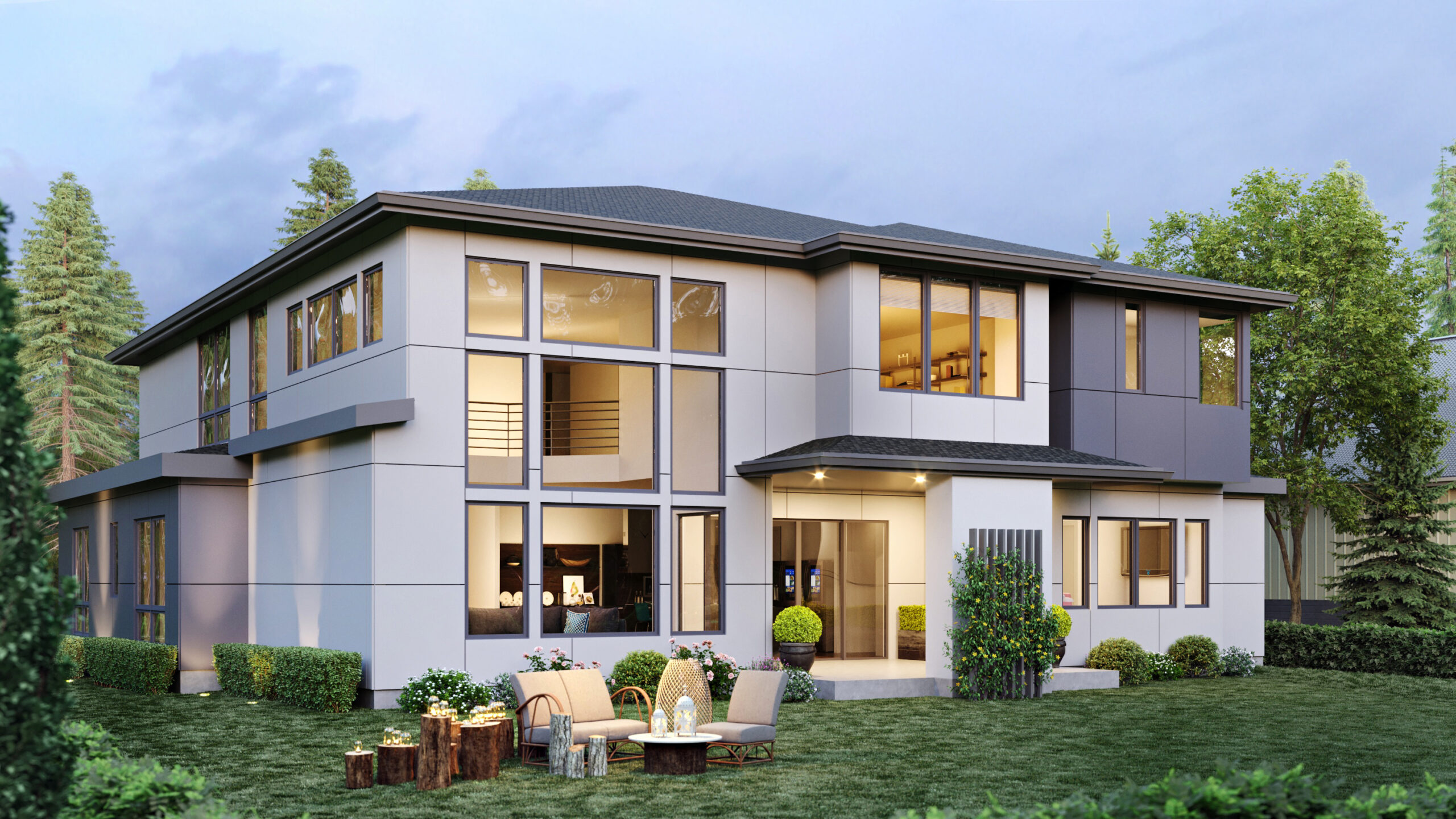 - This Contemporary, two-story home with a guest room on the first floor features 4,478 square feet of living space with high ceilings, a sleek modern design, and many large windows.