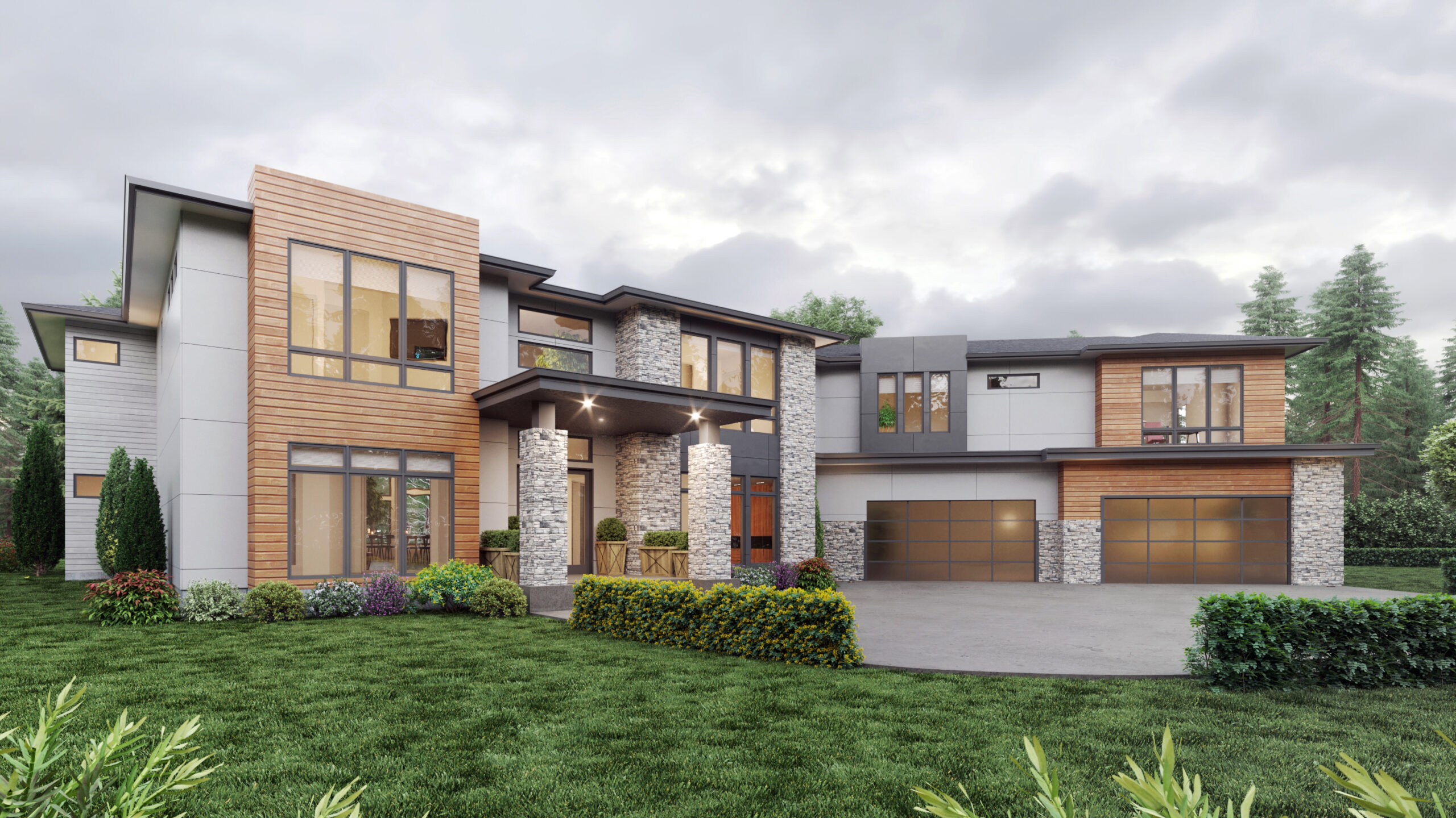 - With over 7,000 square feet of living space, this 2-story Modern Northwest home plan offers something for everyone: gourmet kitchen, recording studio, 4-car garage, and a rec room.