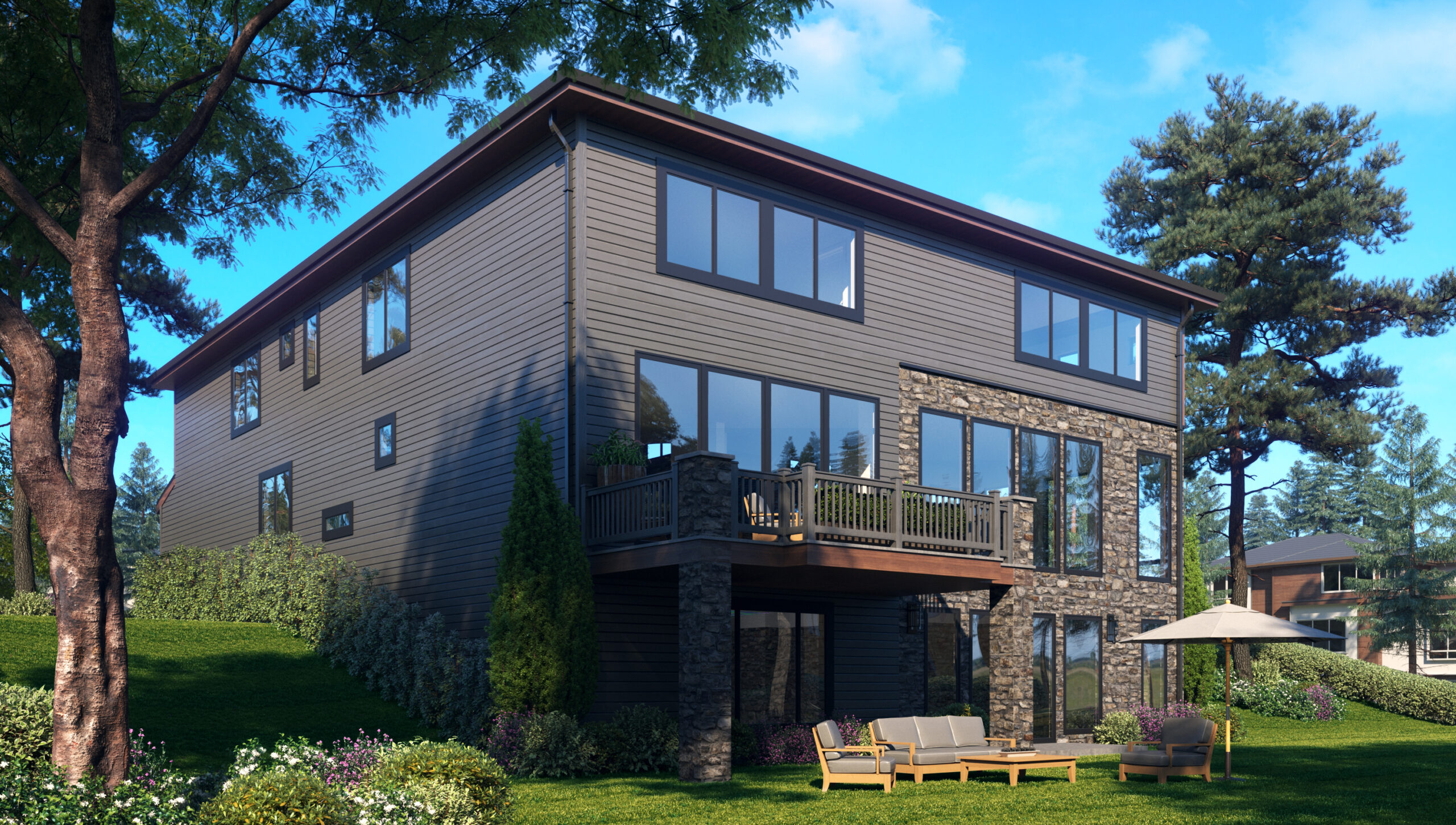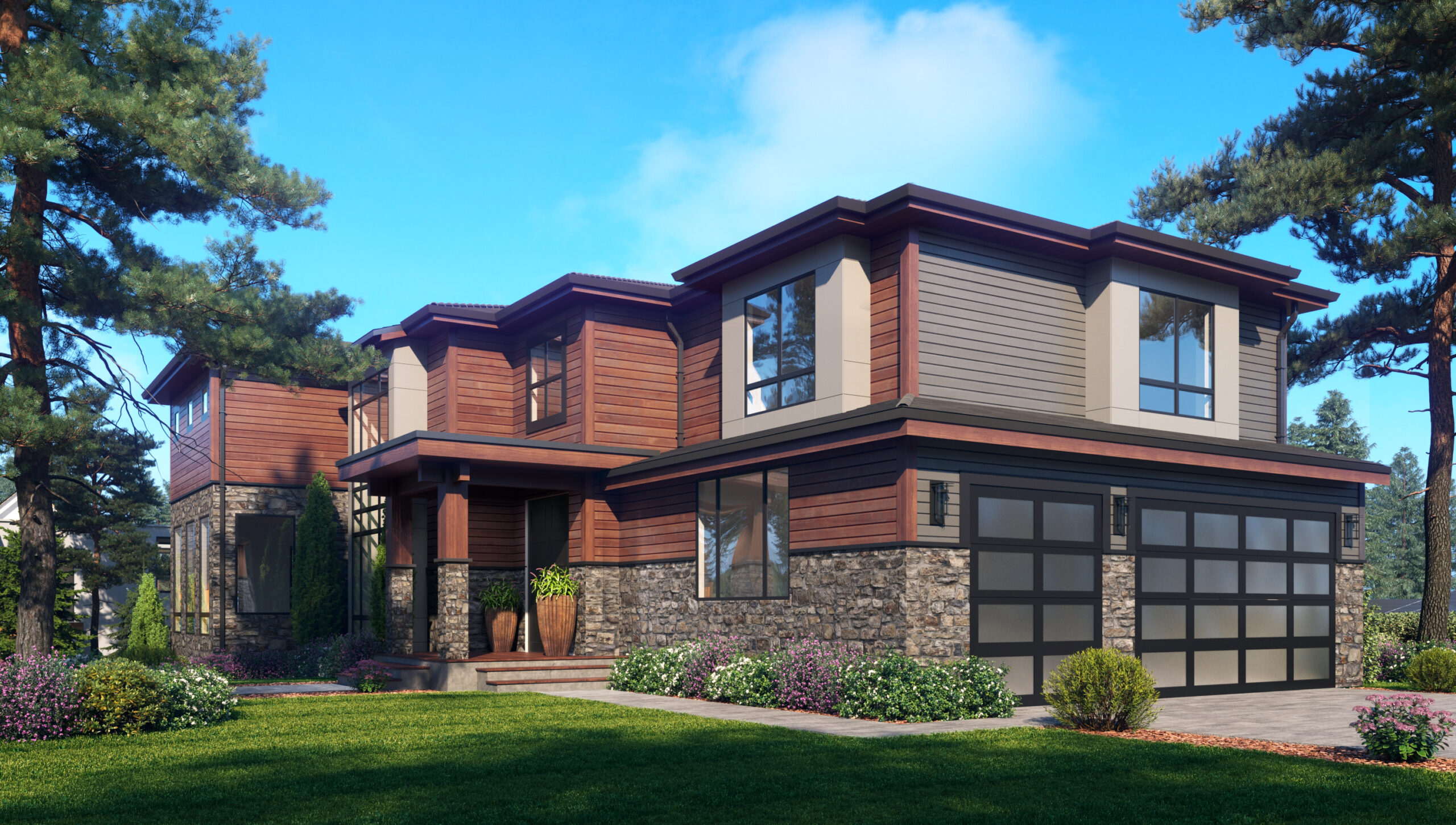 - Beauty defines this well-appointed, contemporary home plan – ideal for a side sloping lot – complete with a private guest suite on the lower level.