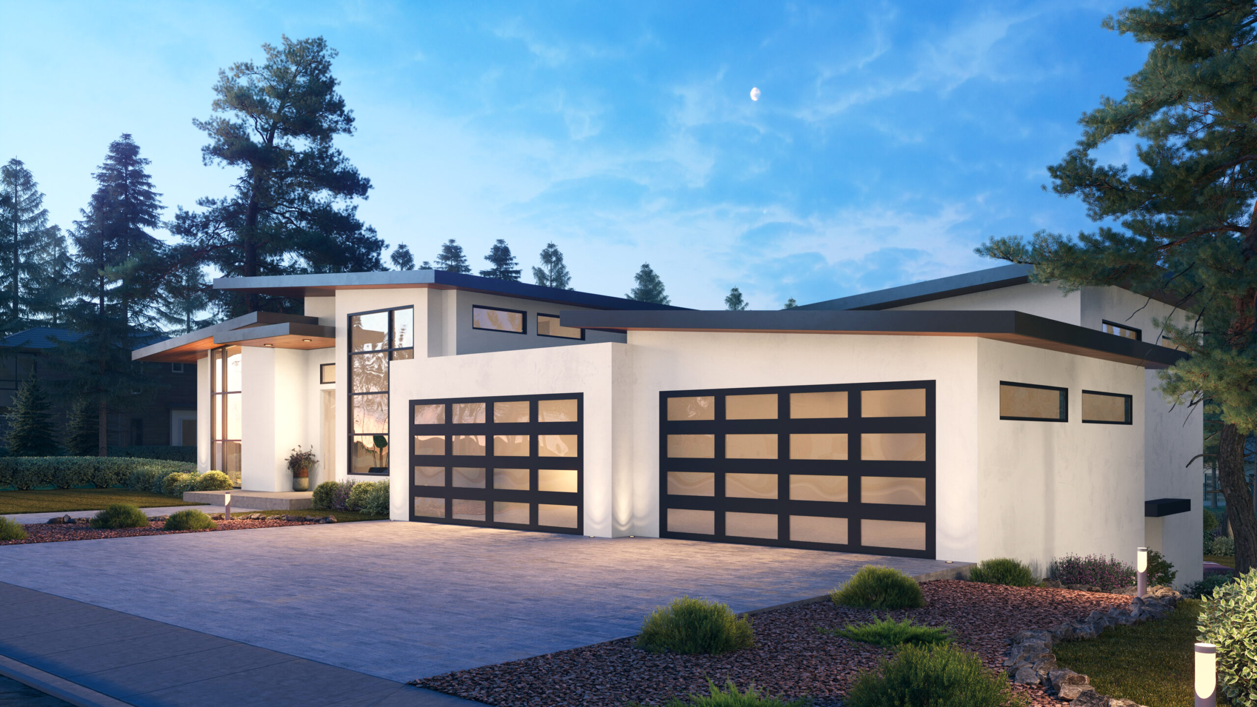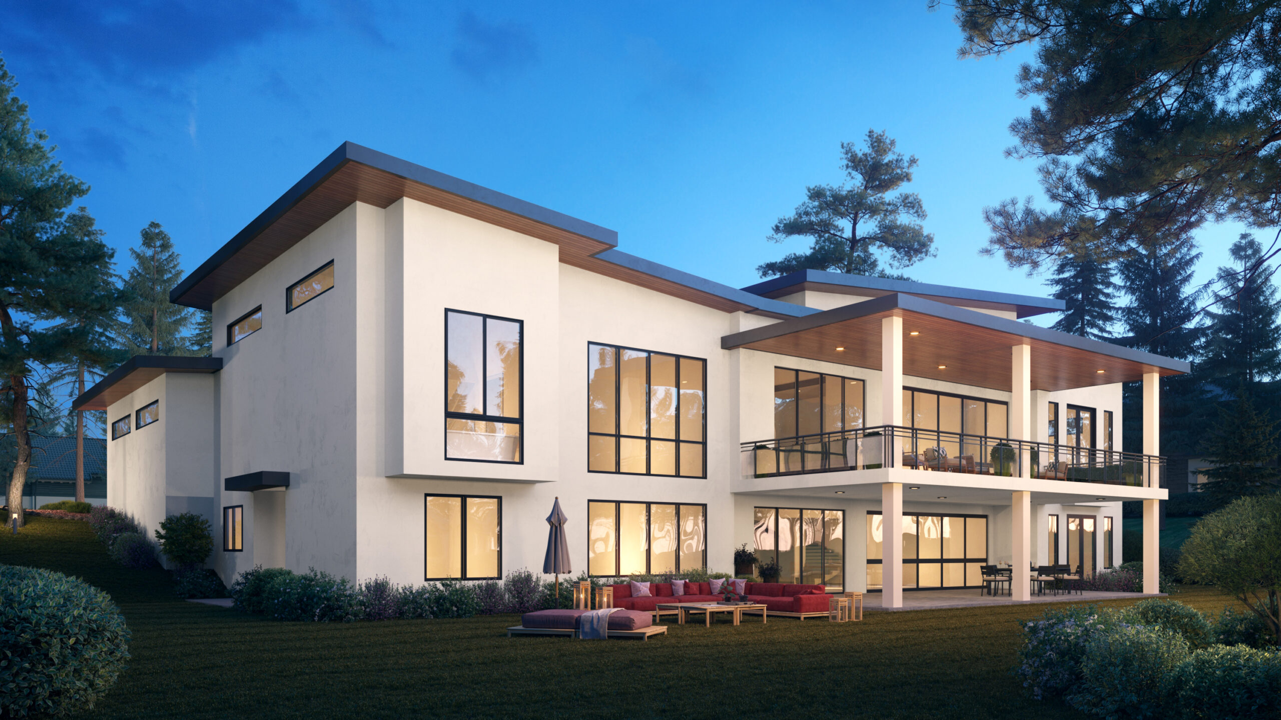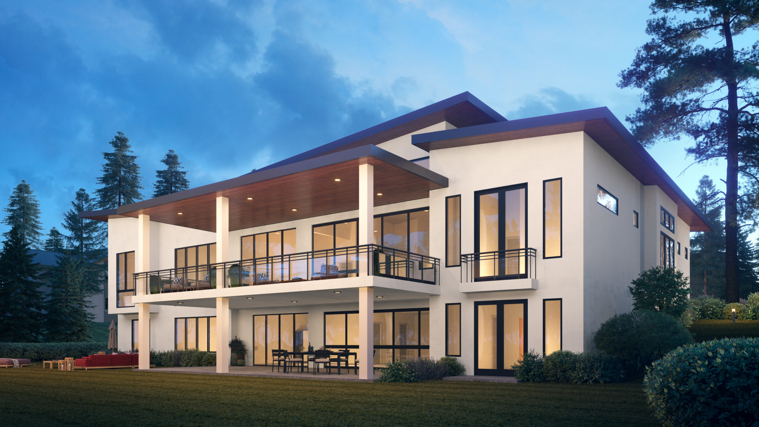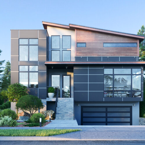 - Slanted shed roofs offer interesting angles, while adding to the contemporary look of this spacious house plan. The majority of the rear elevation is comprised of oversized windows, allowing nature to serve as the art.