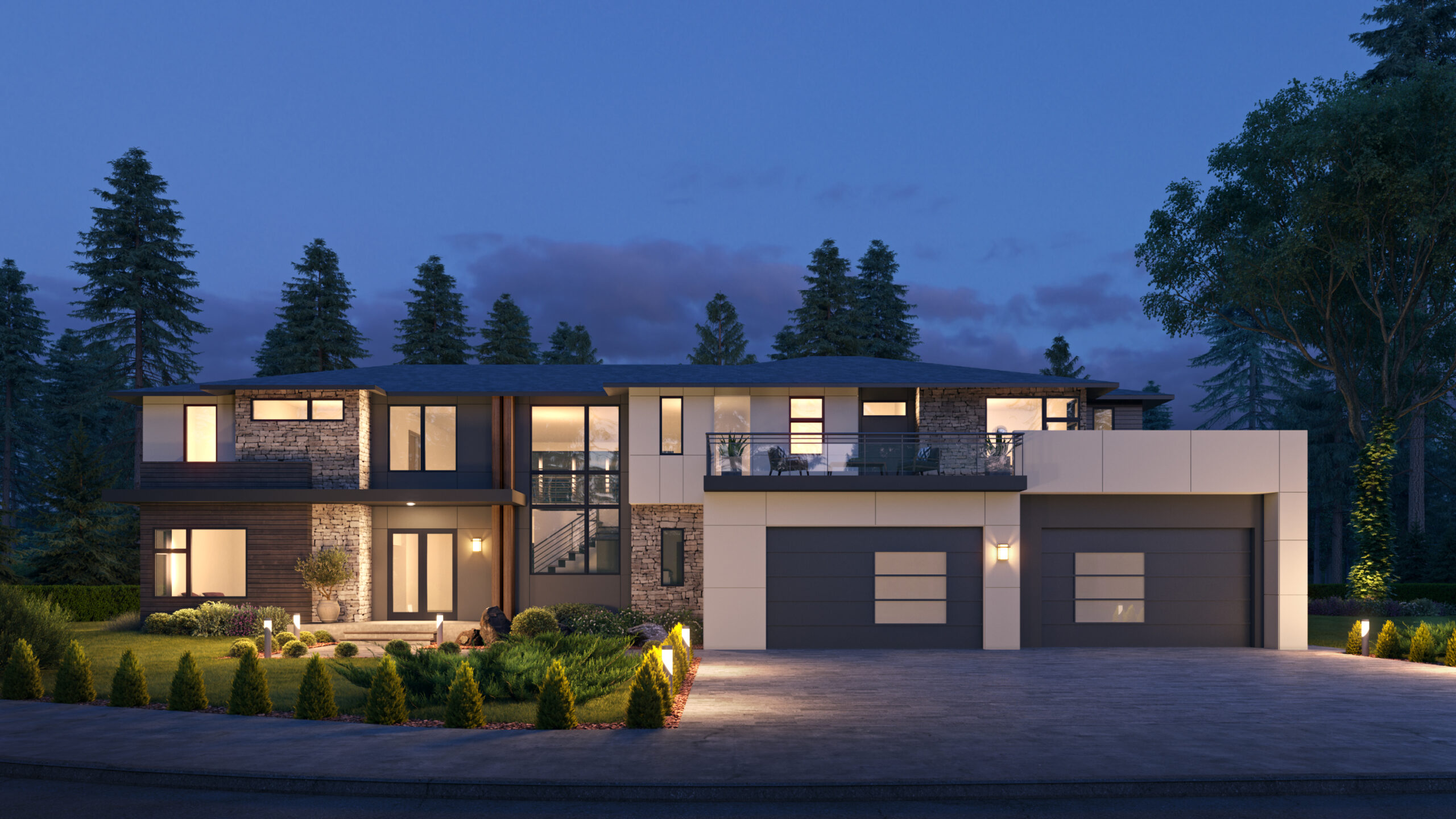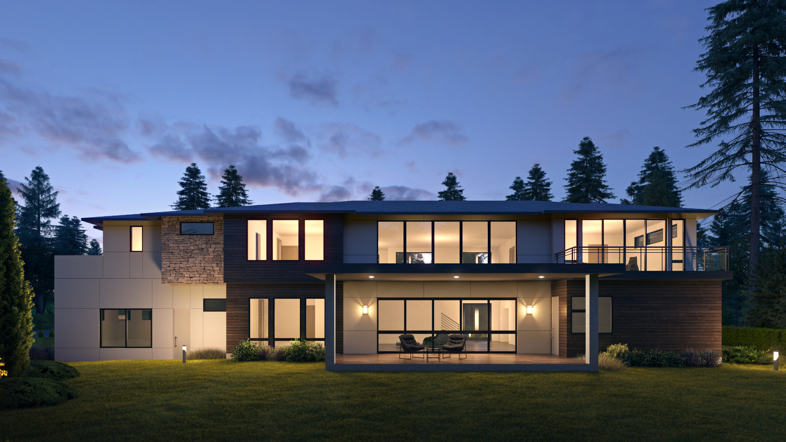 - Entertaining is a breeze in this two-story Contemporary Northwest home plan with its gourmet kitchen and retractable rear wall that expands the great room onto the covered patio.