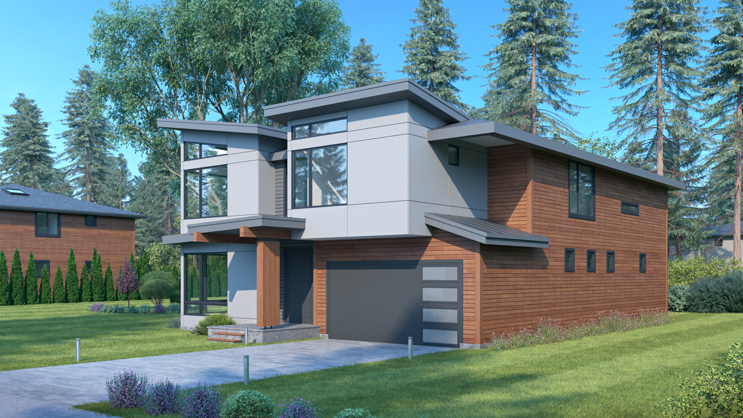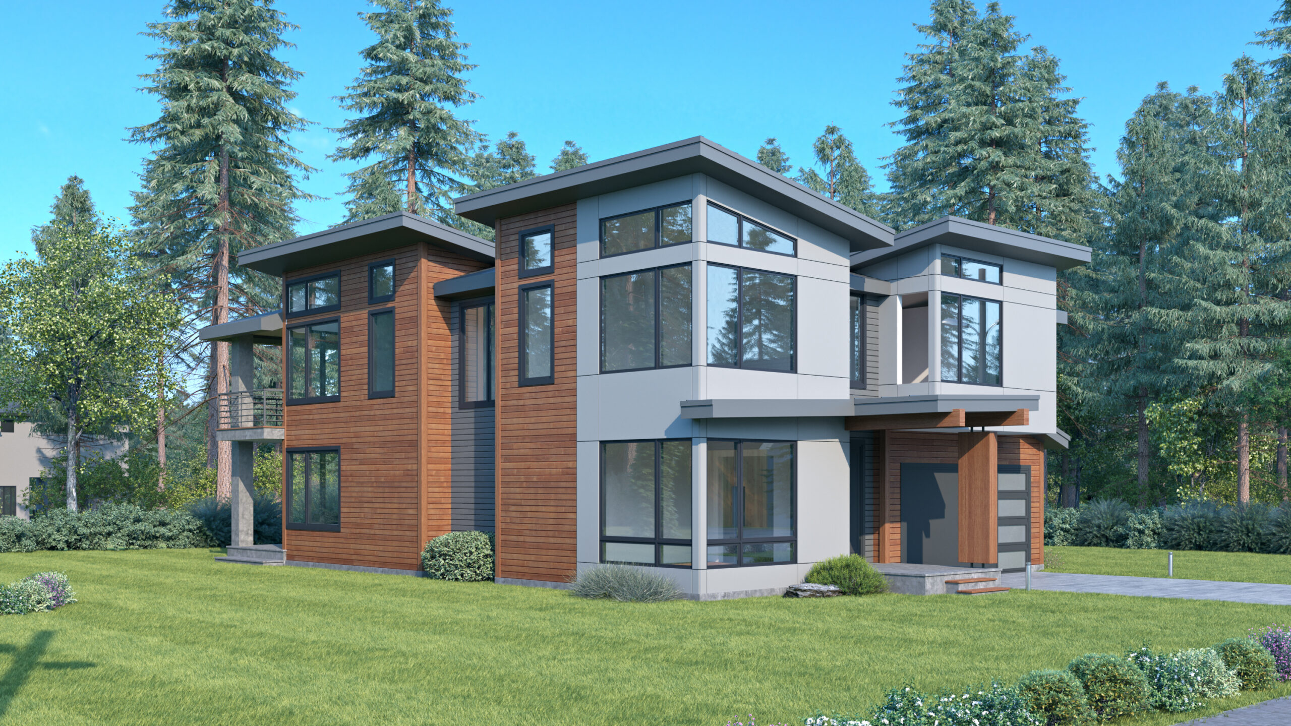 - This stunning, Modern Northwest house plan takes advantage of the surrounding landscape by positioning the shared living spaces on the second level for the best rearward views.