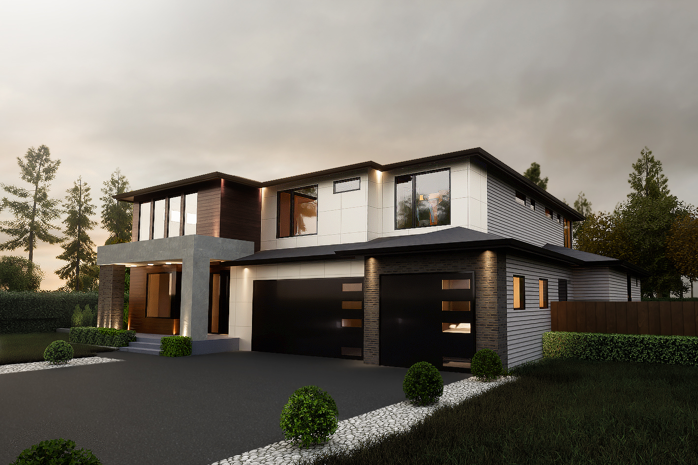 • A blend of modern siding materials combine with a low-pitched roof to create this Contemporary Northwest home plan.
