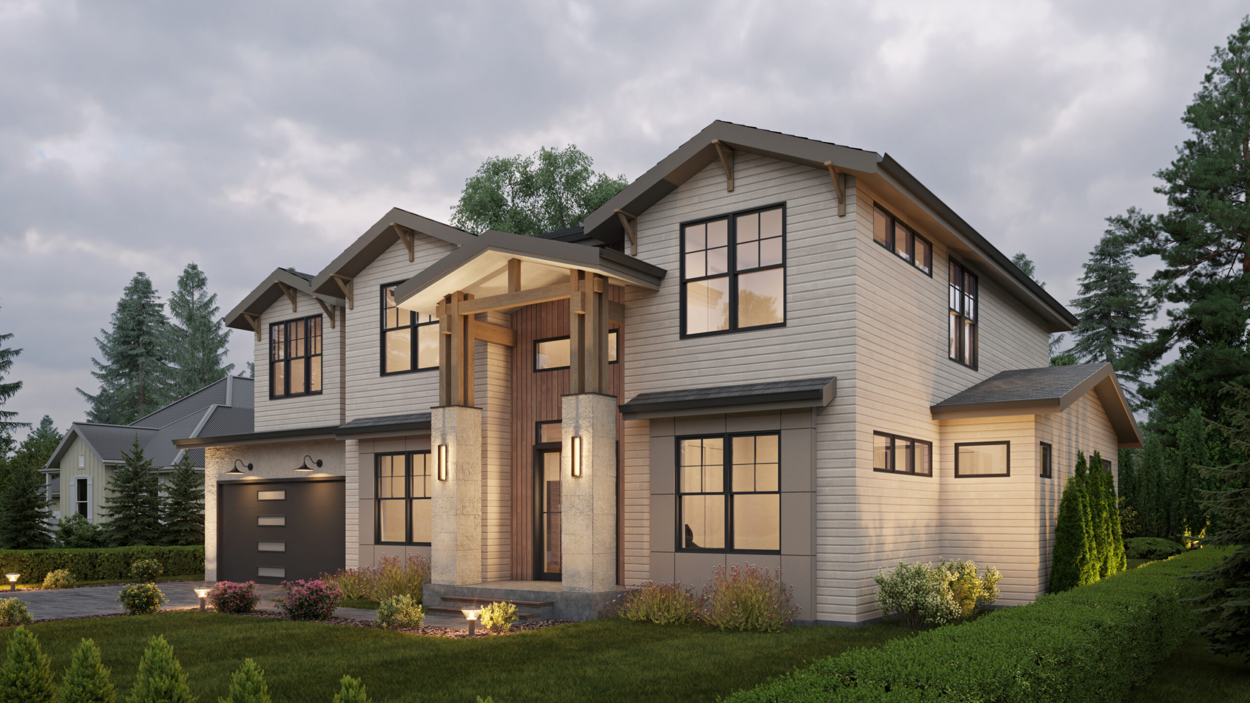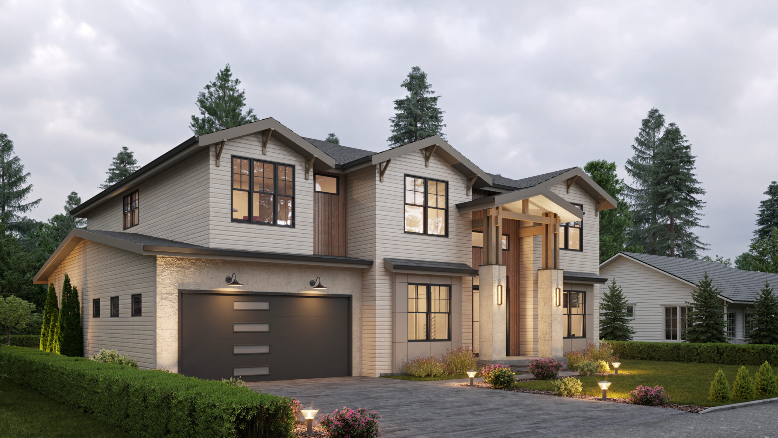 - Large concrete panels adorn the facade of this Modern Northwest home plan that gives you over 4,000 square feet of living space.
