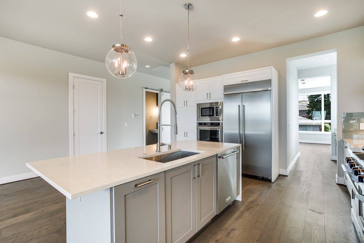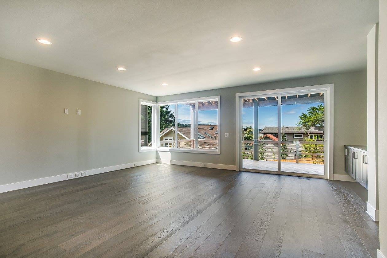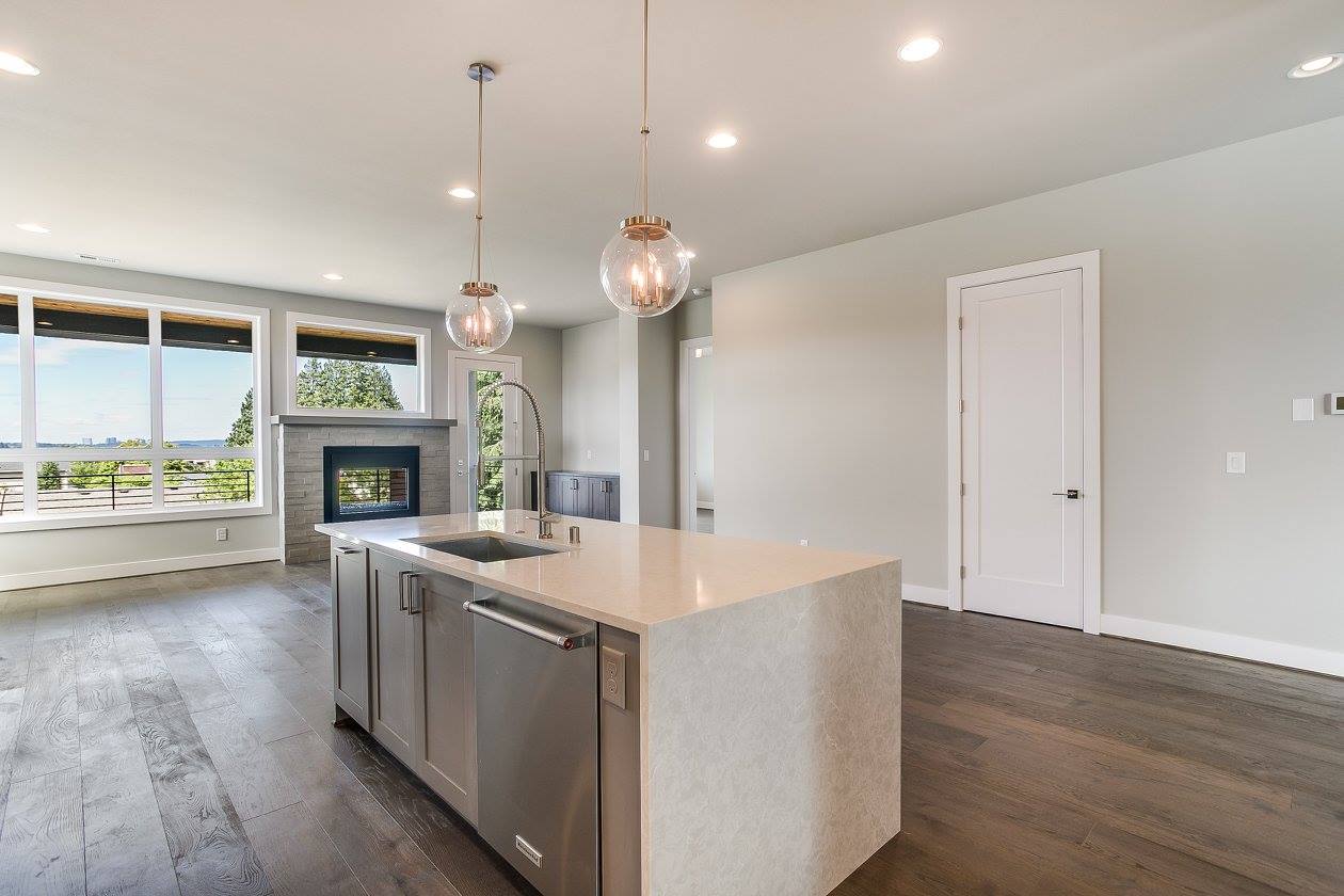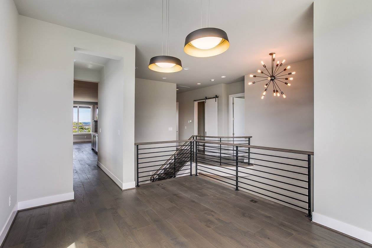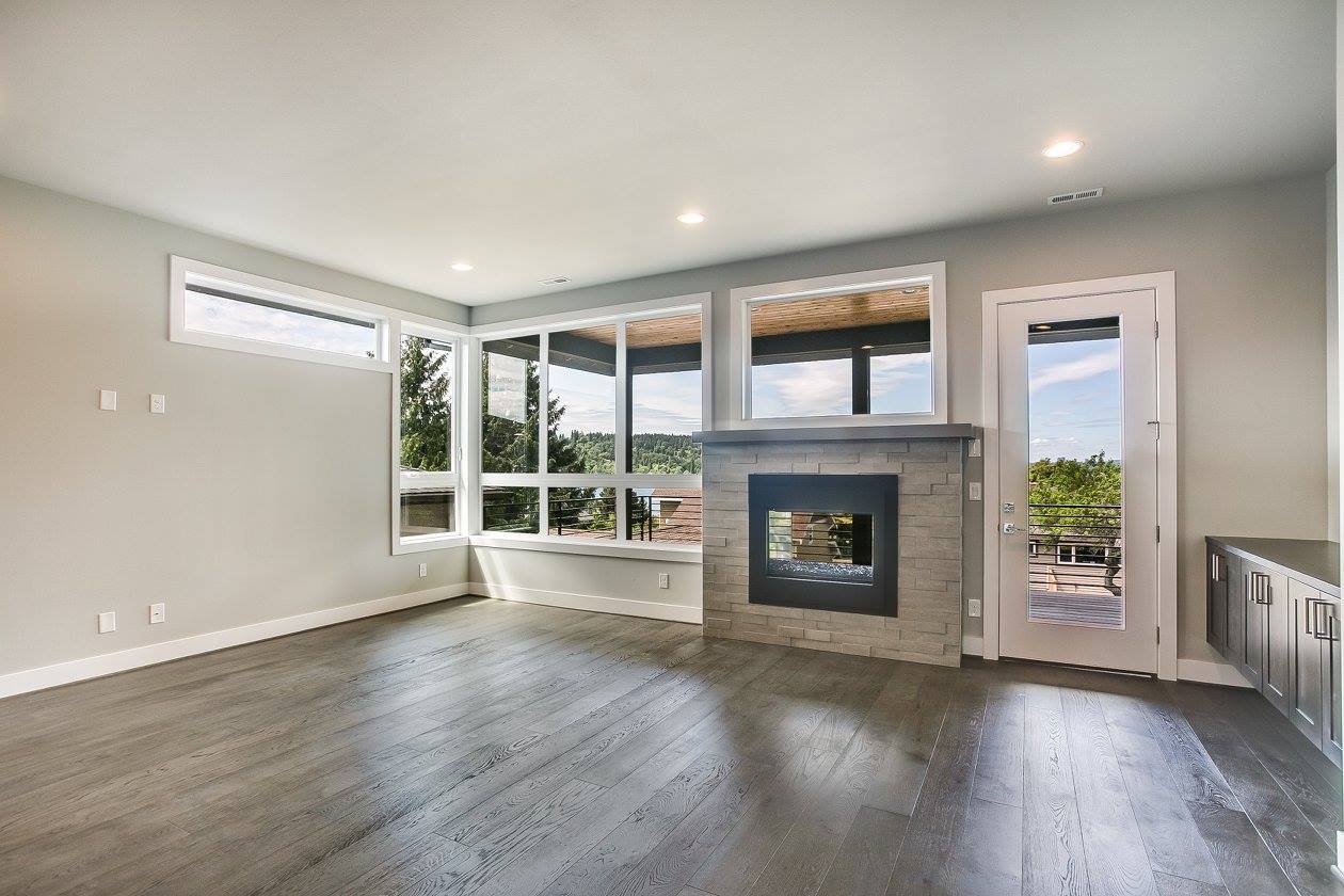 - The second level features a large great room with a double-sided fireplace which can be enjoyed from the great room and covered deck. Walls filled with windows allow the light to infiltrate throughout the shared living space.