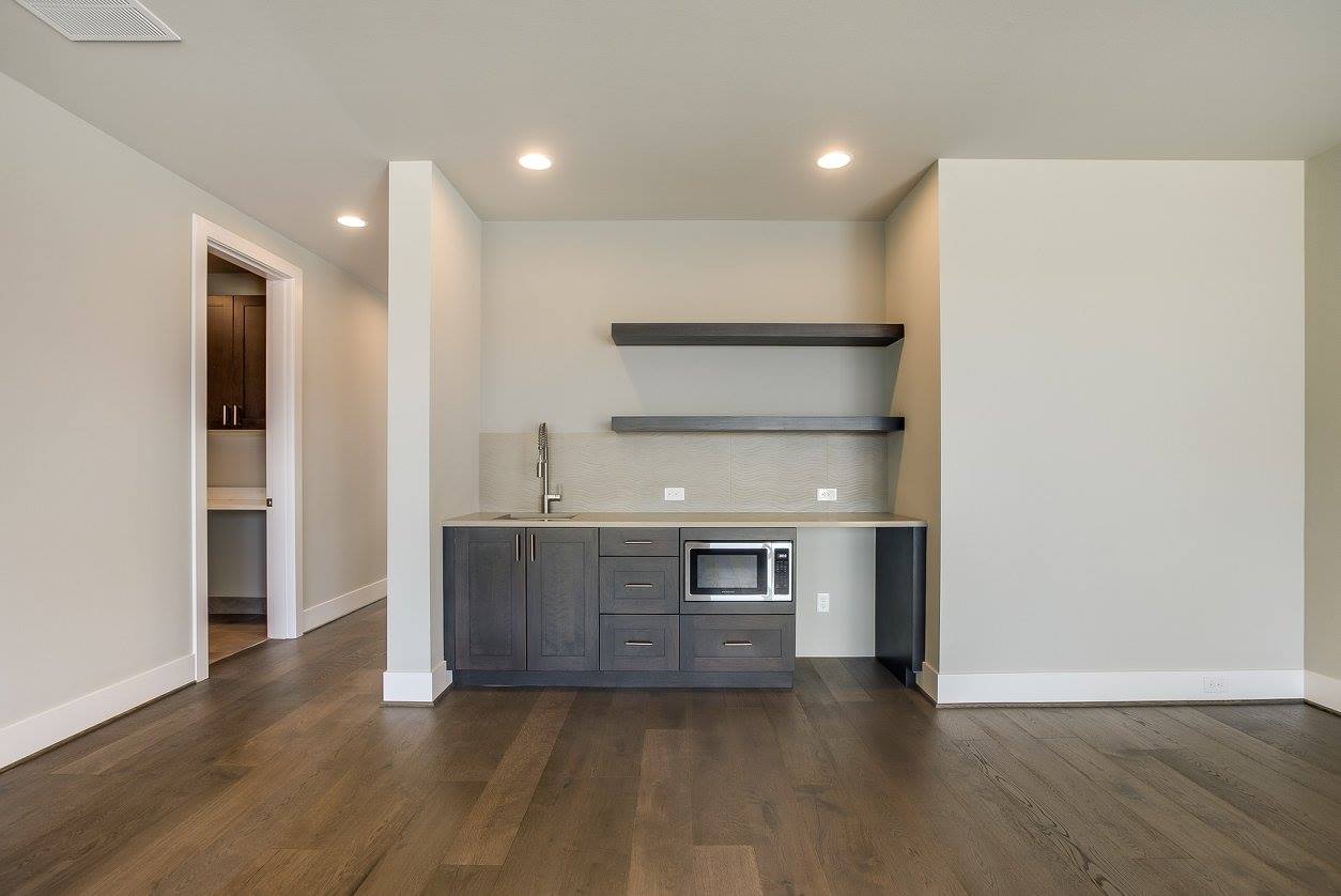 - A butler’s pantry connects a uniquely situated dining room which overlooks the foyer below.